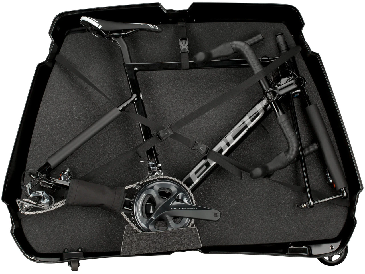 Robuste und praktische Hartschalen-Transporttasche zum sicheren und komfortablen Transport Deines Bikes.