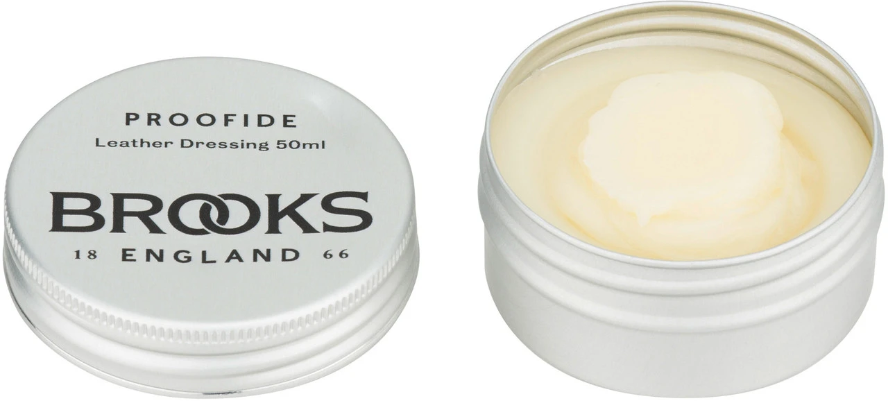 Das Proofide Sattelfett von Brooks pflegt und schützt Deinen Ledersattel vor Wasser und Schmutz, so bleibt die Oberfläche lange glatt und geschmeidig.