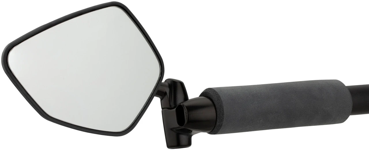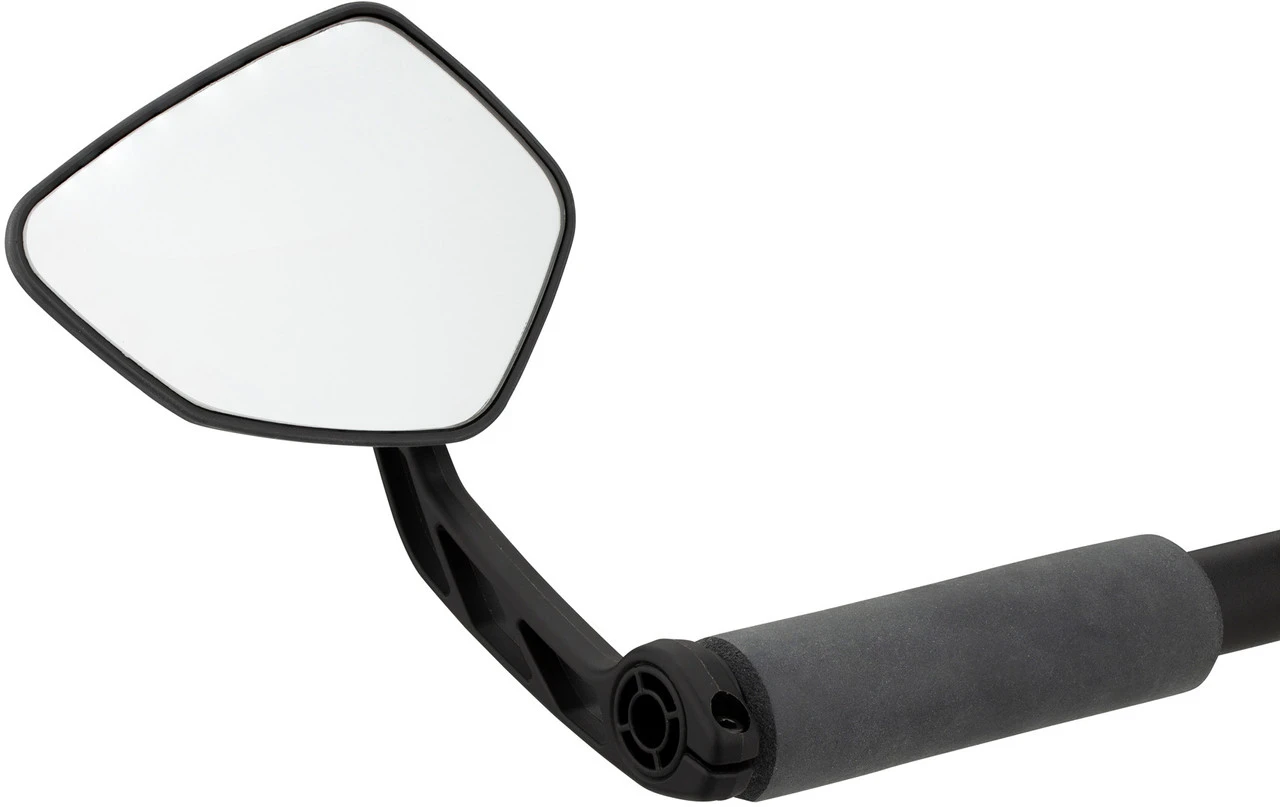 Der Cycle Star E Rückspiegel von busch+müller hat eine große, fünfeckige Spiegelfläche nicht nur für schnelle E-Bikes. Der weiche Rahmen um den Spiegelkopf bietet Schutz bei Kollisionen. Der Spiegel ist mit dem “ E“ -Prüfzeichen versehen und somit für schnelle E-Bikes zugelassen, die mit einem geprüften Spiegel ausgerüstet sein müssen. Trotzdem ist er auch für andere Fahrräder geeignet.