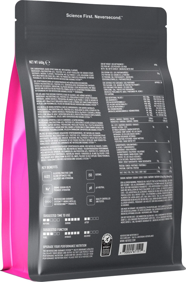 Natrium:625 mg / 200 mgLieferumfang:1 x Getränkepulver NeverSecond C30 Sports Drink, Nettofüllmenge 640 g