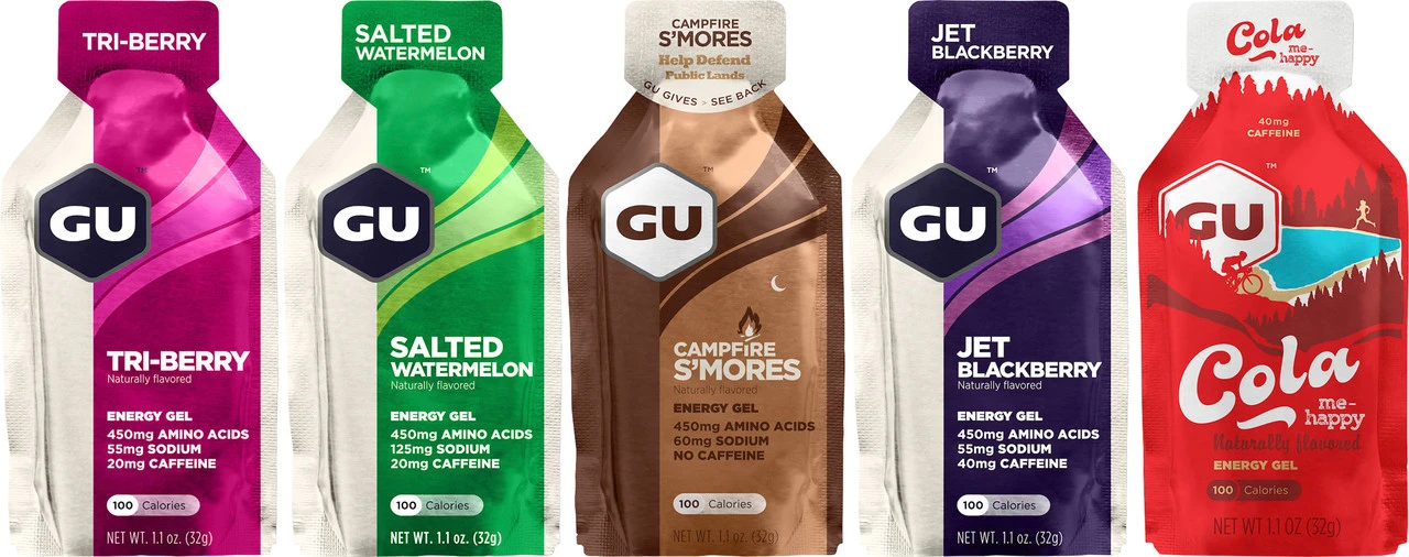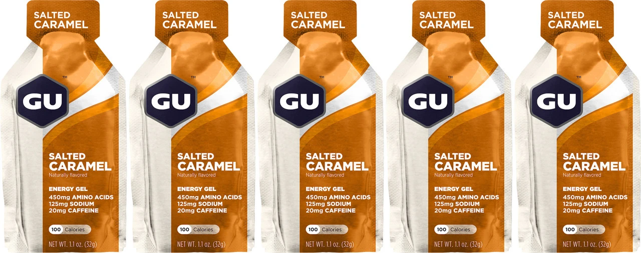 Mit dem Energy Gel von GU Energy Labs versorgst Du Dich auf langen Bike-Touren mit schnell verfügbarer Energie. Die handlichen Gel-Packungen finden problemlos Platz in jeder Trikottasche.