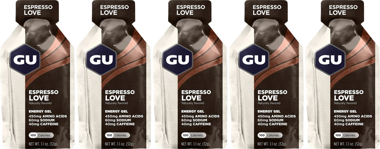 Maltodextrin, Wasser, Fruktose, Aminosäuren (Leucine, Valine, Histidine, Isoleucine), Säureregulator (Kaliumzitrat, Natriumzitrat), natürliches Kaffeearoma, GU Antioxidant Blend (Natürliches Vitamin E und C), Zitronensäure, Kalziumkarbonat, Meersalz, Konservierungsstoffe (Natriumbenzoat, Kaliumsorbat), Fumarsäure, Apfelsäure, GU Herbal Blend [Kamille, Kolanuss (mit Koffein), Ingwer], Verdickungsmittel (Pectin).