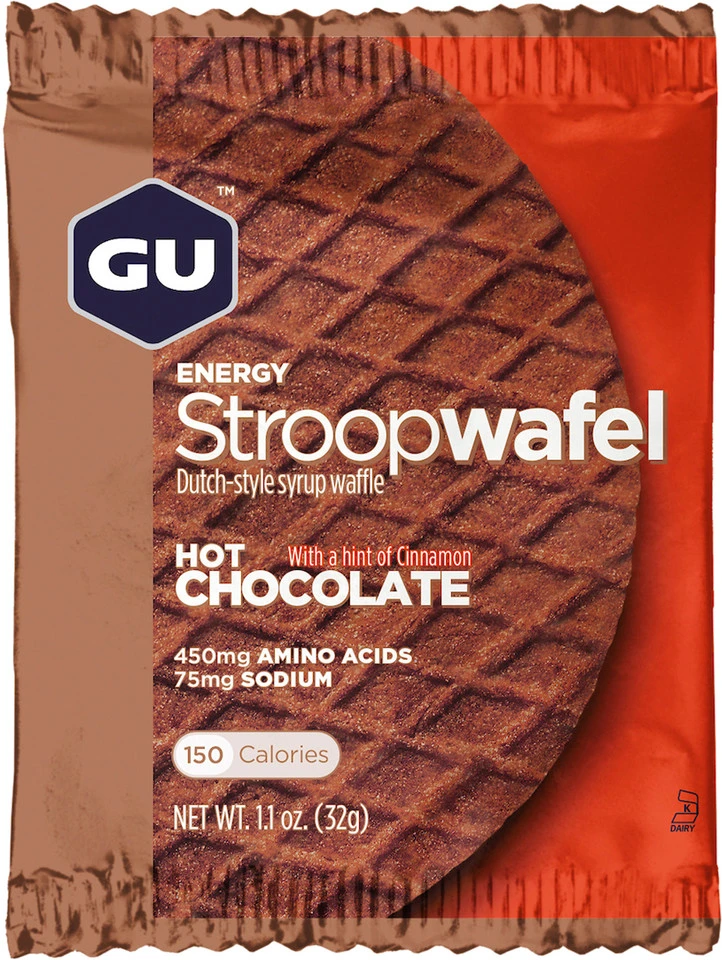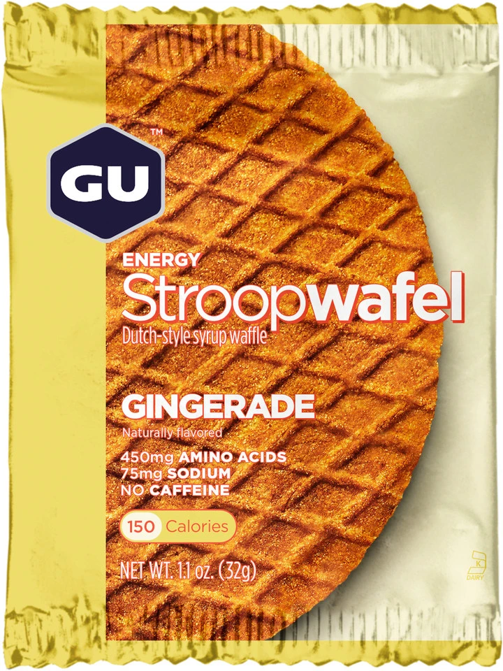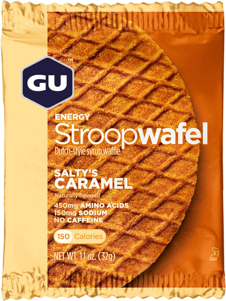 Eine Energy Stroopwafel von GU Energy Labs ist die richtige Wahl auf langen Touren, wenn Du keine Lust auf einen klassischen Riegel hast. Das flache Gebäck im Stil der beliebten niederländischen Waffelspezialität hat einen Kern aus Gel für den extra Energieschub und passt problemlos in jede Trikottasche.