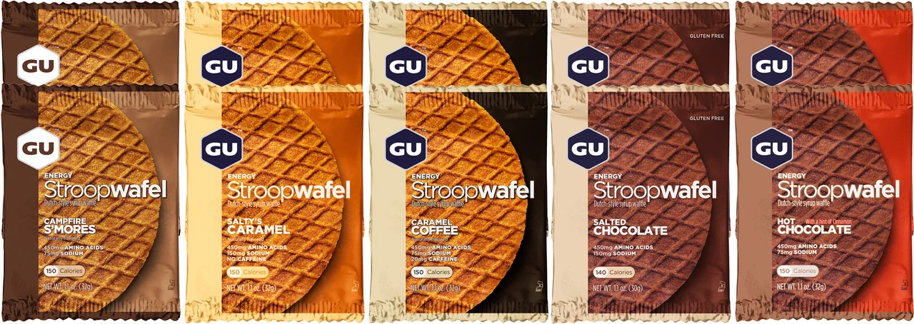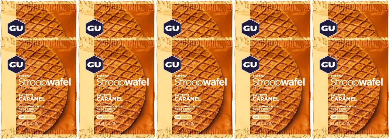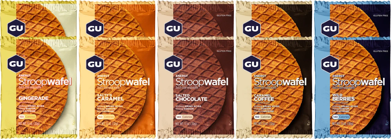 Eine Energy Stroopwafel von GU Energy Labs ist die richtige Wahl auf langen Touren, wenn Du keine Lust auf einen klassischen Riegel hast. Das flache Gebäck im Stil der beliebten niederländischen Waffelspezialität hat einen Kern aus Gel für den extra Energieschub und passt problemlos in jede Trikottasche.