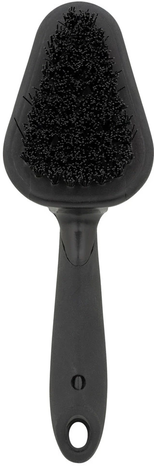 Die Detailing Bürste (klein, Kopflänge 6,5 cm) ist ideal zum Reinigen von Kettenblättern, Naben und schwer erreichbaren engen Stellen. Dank der harten Nylon-Borsten lässt sich auch hartnäckiger Schmutz leicht entfernen. Durch den gummierten Griff und den zusätzlich genoppten Daumenbereich hat man jederzeit die Bürste fest in der Hand. Zudem schützt die Gummierung an den Kanten vor Kratzern und Beulen.