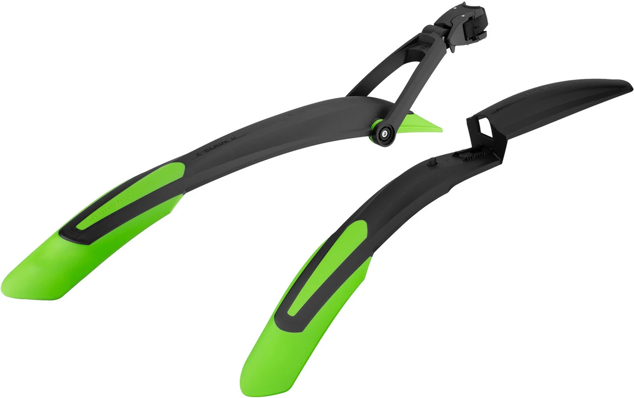 Spezifikationen:Einsatzbereich:All Mountain, Touring & TrekkingRadgröße:27,5+“ , 28″ , 29″Position:Gabel, SattelstützeMontage:FestmontageBreite:100,4 mmRadschutzlänge vorn:680 mmRadschutzlänge hinten:620 mmMaterial:KunststoffFreigaben:Reifengröße max.:29 x 3,0″Features:für Sattelstützendurchmesser bis 35 mmdurch Quick-Release-Befestigung schnell zu lösen und anzubringenHerstellernummern:blau:11606grün:11607Lieferumfang:1 x Schutzblech Set SKS Shockblade + X-Blade1 x Mutter1 x Schraube1 x Innensechskant2 x Schiene5 x Konus-Adapter