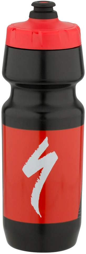 Die Specialized Big Mouth Trinkflasche mit 710 ml Volumen hat ihren Namen von der hohen Durchflussmenge, die jene herkömmlicher Wasserflaschen um 50 % übersteigt. So fällt das Trinken während der Fahrt leichter, zumal sich das große, weiche Ventil gut bedienen lässt und das flexible Material angenehm in der Hand liegt. Die Big Mouth Flasche ist mit verschiedenen Dekors erhältlich – alle mit original Specialized-Logo.