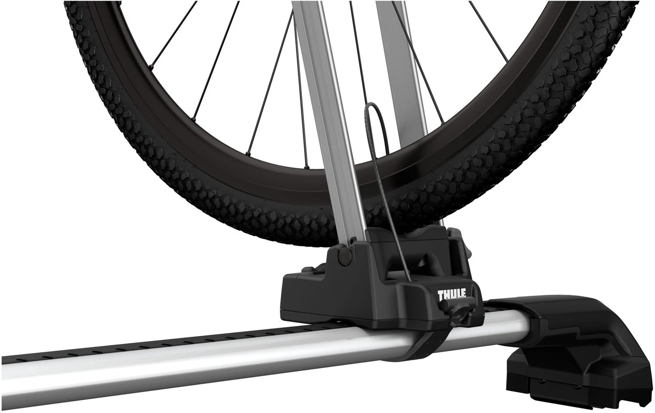 Der Thule Front Wheel Holder ist eine Vorderradhalterung, die Du auf Deinem Dachträger montierst.