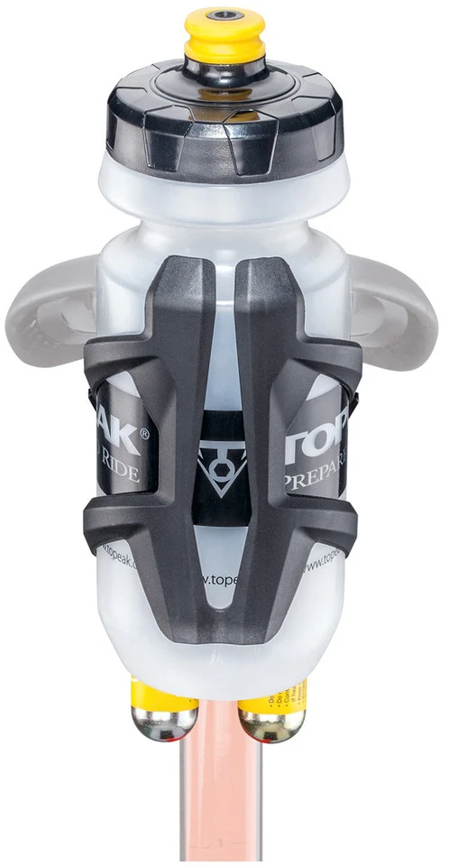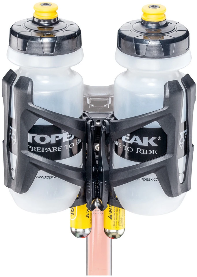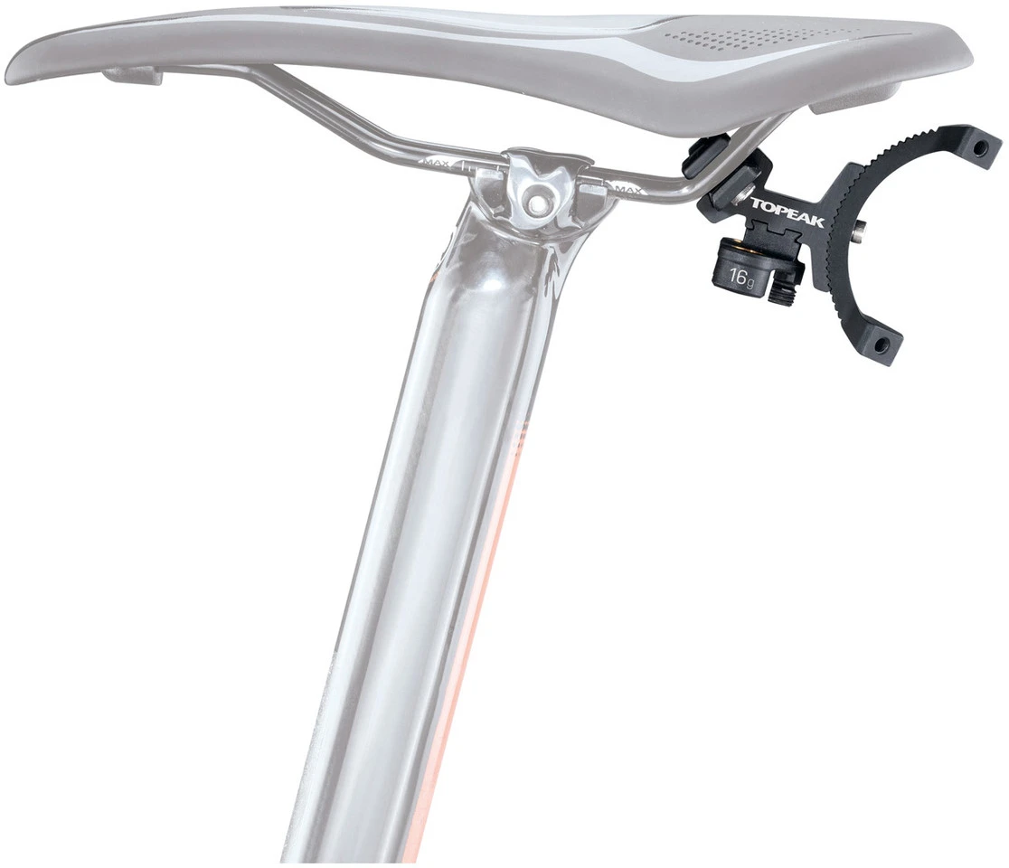 Die Sattelbefestigung für Flaschenhalter wird am Sattelgestell befestigt und kann bis zu zwei Flaschenhalter, CO2 Kartuschen und einem Pumpenkopf aufnehmen. Der Winkel der Befestigung kann verstellt werden um Dir das Erreichen der Trinkflasche zu erleichtern.