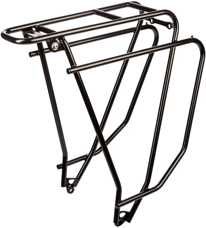 Spezifikationen:Einsatzbereich:City, Touring & TrekkingBefestigung oben:HinterbaustrebenbefestigungBefestigung unten:Strebenbefestigung an RahmenausfallendeLaufradgröße:26″ , 28″Strebendicke:10 mmZuladung (max.):26 kgTechnische Daten:Material:Stahl (25CrMo4)Maße (H x B x T):370 mm x 99 mmReifenbreite (max.):2,4″Lochabstand Rücklicht:50 mmFreigaben:Schutzblechbreite (max.):65 mm / 2,6″Features:handgefertigter Stahl-Gepäckträger für Einkäufe und Tourenflexible Montage an vielen verschiedenen Rahmen3D-Füße mit optimaler Krafteinleitung und integrierter Schraubenaufnahmetiefere Anbringung der Packtaschenstrebe für bessere SchwerpunktlageHakenstopper an den GepäckstrebenÖsen zum Befestigen von SpanngurtenAufnahme für Rücklichtnachrüstbar mit tubus Klick FederklappeHerstellernummer:80100
