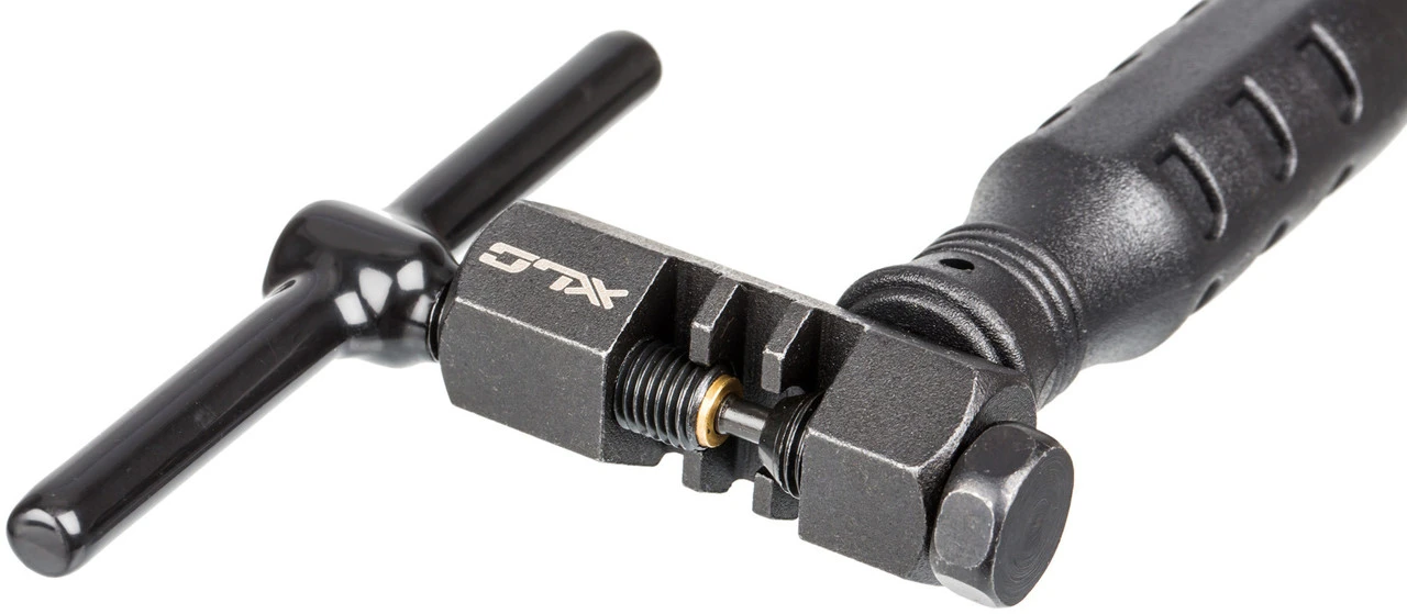 Handlicher XLC Kettennietentferner für Shimano HG- und UG-Ketten. Der gummierte Griff bietet einen guten Halt für eine sichere Handhabung.